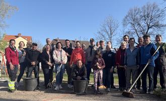 Unkompliziert fanden sich Teams zusammen - ein Teil sammelte Müll aus den Grünanlagen, Verschiedene schrubbten Graffiti von den Spielgeräten und Denkmälern, Andere füllten Beete mit Muttererde auf, nahmen Neuanpflanzungen vor und erneuerten den Sand rund um die Spielgeräte. In allen Ecken wurde gerecht und gekehrt.
