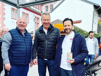 Der CDU Ortsverband Grünstadt-Asselheim-Sausenheim startete am Ostersamstag (08.04.2023) während des Grünstadter Wochenmarktes am Carré-Vert eine Spendenaktion für die VOR-TOUR der Hoffnung (Benefiz-Radtour…rollt für krebskranke und hilfsbedürftige Kinder). Kostenlos gab es frischgebackene Waffeln, Secco, und einen Blumengruß (Osterglocken). Kleine und große Kinder bekamen auch noch Süßigkeiten. CDU-Vorsitzender Mimmo Scarmato war überrascht von der Summe, die durch das Verschenken der 300 Waffeln eingegangen ist: „Super - ich habe mich riesig gefreut!“.