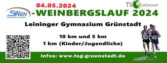 Beim diesjährigen SWEN Weinbergslauf, bei dem 2 Kinderläufe über 1000 Meter und ein Aktivenlauf über 5 bzw. 10 km gestartet wurde, erreichten insgesamt 234 Sportler das Ziel. Die Ergebnisse können über die Homepage der TSG Grünstadt (QR-Code) abgerufen werden.
