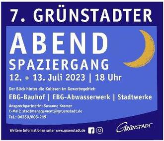 Es sind weitere Abendspaziergänge in der Innenstadt und im Gewerbegebiet geplant. Wir bitten die Firmen, die sich bei einem Abendspaziergang vorstellen möchten, sich an unsere Stadtmanagerin Susanne Kramer zu wenden (Telefon: 06359/805-219, E-Mail: susanne.kramer@gruenstadt.de).