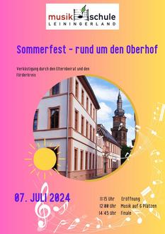 Das Parkfest im Peterspark ist bekanntlich Geschichte und als Nachfolgeveranstaltung gibt es in diesem Jahr zum ersten Mal das „Sommerfest der Musikschule rund um den Oberhof“, zu dem am Sonntag, 07. Juli herzlich eingeladen wird. Von 11:15 Uhr bis ca. 15:00 Uhr ist aus der Schülerschaft alles vertreten, was den ehrwürdigen Schlosshof mit seiner Umgebung zum Klingen bringen wird.