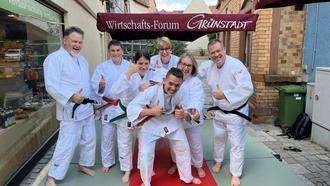 Außerdem wurden in einem Schnellkurs die ersten Fertigkeiten gelernt. Es wurden 14 weiß-gelbe Gürtel inklusive einer offiziellen Urkunde des Deutscher Judo Verbands verliehen.