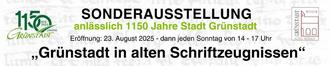 Anlässlich des Stadtjubiläums „1150 Jahre Grünstadt“ hat der Altertumsverein Grünstadt-Leiningerland e. V. eine Sonderausstellung konzipiert, die am Samstag, den 23. August um 15 Uhr mit einer offiziellen Feierstunde im Museum im Alten Rathaus eröffnet wird.