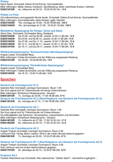 Die ausführlichen Kursbeschreibungen entnehmen Sie bitte dem Programmheft oder über die homepage
