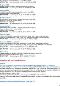 Lehrbuch/Titel, Verlag, Band, Lektion: Wird in der ersten Stunde bekannt gegeben.