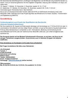 Da es sich um Einzelsprechstunden handelt, bittet die KVHS um telefonische Anmeldung vorab unter 06322/961-2408. Gefördert durch das Projekt Digi-Netz des Ministeriums für Arbeit, Soziales, Transformation und Digitalisierung (MASTD)