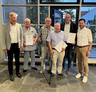 CDU-Vorsitzender Mimmo Scarmato dankte den CDU-Mitgliedern Guido Trump, August Nastoll, Dr. Günter Herrmann und Michael Reinhardt für ihren jahrelangen Einsatz und ihr Engagement zum Wohle der Stadt Grünstadt.