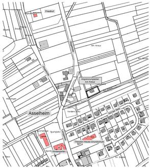 Die Satzung betrifft das bebaute Grundstück Am Kreuz, Flst. Nr. 1388/2, das am äußersten nordöstlichen Rand der bebauten Ortslage des Ortsteils Asselheim, nördlich des unbefestigten Wirtschaftsweges Am Kreuz bzw. östlich der weilerartigen Bebauung „Ziegelhütte“ liegt. Der Geltungsbereich der Satzung ist im nachfolgenden Kartenausschnitt dargestellt.