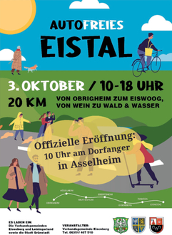 Am Donnerstag, den 3. Oktober, findet zwischen 10 und 18.00 Uhr wieder das „Autofreie Eistal“ zwischen dem Eiswoog und Obrigheim statt. Für Kraftfahrzeuge ist die Strecke in dieser Zeit gesperrt. Auf der rund 20 km langen Strecke wird an vielen Ständen für das leibliche Wohl gesorgt und es finden zahlreiche Aktionen statt.