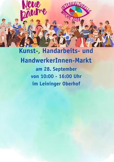 Im Rahmen der „Interkulturellen Woche 2024 – Neue Räume“ findet am 28. September von 10:00 Uhr bis 16:00 Uhr im Leininger Oberhof der Kunst-, Handarbeits- und HandwerkerInnen-Markt statt. Diese Veranstaltung bietet den Besuchern und Besucherinnen die Möglichkeit einzigartige Kunstwerke und handgefertigte Produkte aus verschiedenen Ländern zu erwerben. Der Markt ist nicht nur eine hervorragende Gelegenheit, außergewöhnliche Produkte zu erwerben, sondern auch ein Ort, um die kulturelle Vielfalt zu erleben und neue Kontakte zu knüpfen. Auf dem Markt wird eine breite Palette an kreativen Erzeugnissen präsentiert, die von Schmuck über Textilien bis hin zu Holzarbeiten reichen. Hier können die BesucherInnen nicht nur stöbern und einkaufen, sondern auch die Geschichten hinter den Kunstwerken und Produkten kennenlernen. Für ihr leibliches Wohl sorgen internationale Köstlichkeiten, die ebenfalls auf dem Markt angeboten werden. Wir freuen uns auf Ihren Besuch.