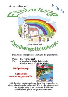 | 11.00 Uhr | Familiengottesdienst in der Prot. Kirche Colgenstein | |