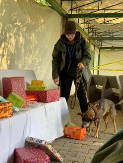 Die vom Verein dekorierte Geburtstagstafel lud die Hunde ein, die ersten Verdächtigen zu „erschnüffeln".