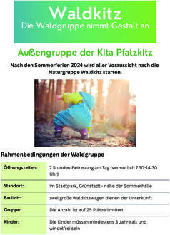 Wenn Sie Ihr Kind für einen Platz bei der Naturgruppe „Waldkitz“ vormerken möchten, schreiben Sie doch bitte eine formlose Interessensbekundung bis zum 10.11.2023 an: