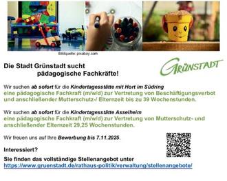 Sie finden das vollständige Stellenangebot unter https://www.gruenstadt.de/rathaus-politik/verwaltung/stellenangebote/