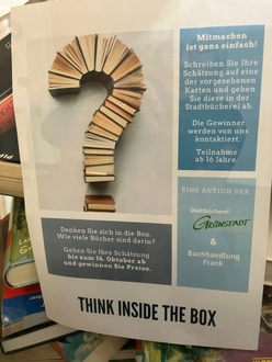 Auch, das Datum der Schätzabfrage für diese Box hat sich geändert, weil sich ja die offizielle Eröffnung geändert hatte. Man kann immer noch mitmachen, einfach in der Bücherei vorbeigehen und den Stimmzettel ausfüllen.