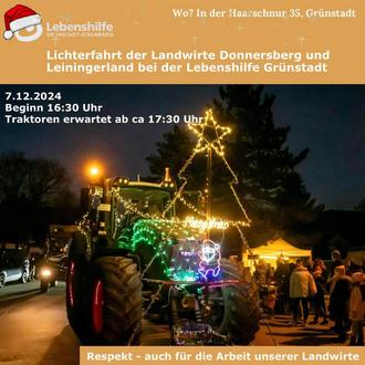 Am 7. Dezember findet in diesem Jahr wieder die Traktoren Lichterfahrt der Landwirte Donnersberg/Leiningerland statt.
