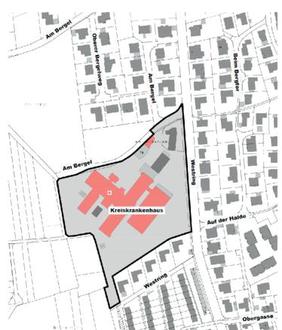 Die 5. Änderung des Bebauungsplanes „West II, Kreiskrankenhaus mit Parkplatzerweiterung“ betrifft damit die Flurstücksnummern 973/23, 973/24, 973/25, 973/30 sowie teilweise 1031/3 (Straßenparzelle).