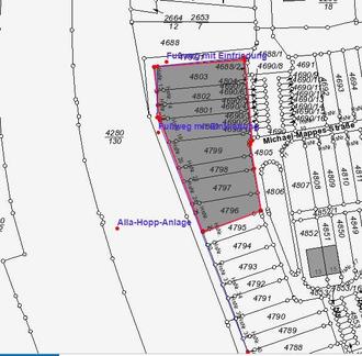 Die Stadt Grünstadt verkauft im Neubaugebiet „In der Bitz“ gegen Höchstgebot das Grundstück in der Michael-Mappes-Straße, bestehend aus den Flst. Nrn. 4796 bis 4803, zur Mehrfamilienhausbebauung mit einer Gesamtgröße von 2.237 m². Das Grundstück grenzt östlich an die eingefriedete Alla-Hopp-Anlage an. Die vorgesehene Riegelbebauung muss als Lärmschutz für das restliche Baugebiet dienen (siehe hierzu auch die Festsetzungen im Bebauungsplan). Abweichungen und/oder Befreiungen vom Bebauungsplan können nicht genehmigt werden.