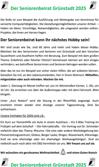 Wir haben in unserer letzten Sitzung für dieses Jahr 2025 versucht Argumente zu finden, warum es wichtig ist, im Seniorenbeirat Grünstadt mitzuwirken. Sich einzubringen. Wir wollen sie, liebe Leserinnen und Leser Ü60 motivieren bei uns eine Rolle zu spielen.