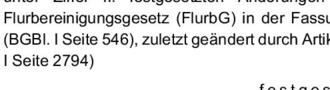 Die den Teilnehmern bekannt gegebenen Ergebnisse der Wertermittlung einschließlich der unter Ziffer II. festgesetzten Änderungen werden hiermit gemäß § 32 Satz 3 Flurbereinigungsgesetz (FlurbG) in der Fassung der Bekanntmachung vom 16.03.1976 (BGBl. I Seite 546), zuletzt geändert durch Artikel 17 des Gesetzes vom 19.12.2008 (BGBl. I Seite 2794)