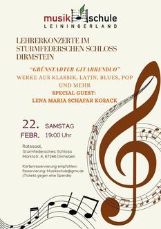 Grünstadter Gitarrenduo musiziert im alten Schloss in Dirmstein am 22. Februar 25. Konzertbeginn ist um 19:00 Uhr.