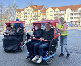 Bei strahlendem Sonnenschein trafen sich Maria Spohr mit der 3-Rad-Kutsche Mutterstadt und Klaus Ziimpelmann und Monika Werra mit der neuen Rikscha Limburgerhof zur Übergabe des Staffelholzes. Nun wird bei der Tagespflege am Mühlweg die Rikscha Limburgerhof die Fahrten übernehmen. Das ist schön, aber für manchen Besucher der Tagespflege auch traurig. Maria Spohr wurde immer freudig begrüßt. Ihre Fahrten waren sehr beliebt. Für uns in Limburgerhof war die Fahrt ein Einstand. Und wir konnten mit zwei Rikschen 4 Fahrten machen. Wir lernten mit Maria Spohr einige schöne Touren im Mutterstädter Wald kennen. Dafür herzlichen Dank.