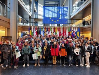 99 Teilnehmer aus Limburgerhof und aus unserer Partnerstadt Chenôve trafen sich Mitte Dezember in Straßburg zum Besuch des Europa-Parlaments. Eindrucksvoll, wie es hier gelingt, Debatten in 24 Sprachen zu führen und zu gemeinsamen Beschlüssen zu kommen. Doch nichts befördert den Gedanken des friedlichen Zusammenlebens so sehr wie der persönliche Kontakt zu unseren französischen Freunden. Bei herrlichem Winterwetter bummelten wir über den berühmten Straßburger Weihnachtsmarkt und hatten ausreichend Gelegenheit, den Vin Chaud, die Crêpes und das Choucroute zu genießen sowie Christbaumschmuck, die Krippenfiguren „Santons de Provence“ und die elsässischen Töpferwaren zu bewundern.