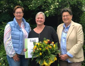 Eine Fortbildung im Rahmen der Qualifizierungsreihe für Leitungskräfte im Sinne der Fachkräftevereinbarung für Tageseinrichtungen für Kinder in Rheinland-Pfalz absolvierte Ute Boos (Mitte), Leiterin der Kommunalen Kindertagesstätte „Altes Rathaus.“ Über rund ein halbes Jahr umfasste die Weiterbildung 120 Unterrichtseinheiten in sieben Modulen und umfasste neben anderen Themen wie Personalführung, Konzeptionelle Ausrichtung sowie deren Steuerung und Zusammenarbeit mit Eltern / Erziehungsberechtigten. Die Erste Beigeordnete Rosemarie Patzelt (rechts) und Fachbereichsleiterin Jutta Ottillinger gratulierten zum erfolgreichen Abschluss.