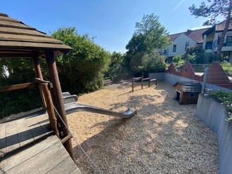 Rund 60 Kubikmetern alten Rindenmulch gegen neue Holzhackschnitzel haben Mitarbeiter des Kommunalen Bauhofs im Belag des Spielplatzes in der Alfred Nobel-Straße ausgetauscht. Das alte Material mußte immer wieder aufgefüllt werden und war deshalb stark verdichtet. Ein Bagger kam zum Einsatz, der die cirka 150 Quadratmeter große Fläche 40 Zentimeter tief aushob. Ein Unkrautvlies wurde verlegt und der neue Belag verfüllt. Insgesamt waren vier Arbeitskräfte vier Tage im Einsatz.