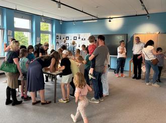 Alle Gäste konnten in einem von den Kindern angeleiteten Workshop selbst ein kleines Kunstwerk schaffen. Wir freuen uns sehr, dass unsere Kursteilnehmenden durch die Kooperation mit der Gemeindebücherei immer wieder die Möglichkeit haben, ihre Werke zu präsentieren und Kunstinteressierte zum eigenen Tun anleiten zu können.