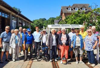 Am 24. Juni fuhren die SeniorInnen in Richtung des etwas angenehmer temperierten Odenwaldes nach Mörlenbach. Dort hatten wir drei Solardraisinen gebucht. Die Draisinen sind überdacht und durch die Solarunterstützung wird lediglich eine Person benötigt, die durchgehend in die Pedale tritt. Ein Beifahrer ist zuständig für die Bedienung zweier Ampeln, wenn eine Straße überquert werden muss. Es gab aber einige Personen, die gerne mitgestrampelt haben. Bei der einstündigen Fahrt durch den Wald nach Waldmichelbach war es angenehm kühl. Einige brauchten ihre Jacke und ein Halstuch. Unterwegs flogen sehr viele Schmetterlinge kreuz und quer. Ein junger Rehbock hielt sich am Gleis auf und sprang dann in den Wald. An einer Futterraufe ruhte sich ein Hirsch aus. Unterwegs konnten wir sehr viel rosa blühenden Fingerhut bewundern.