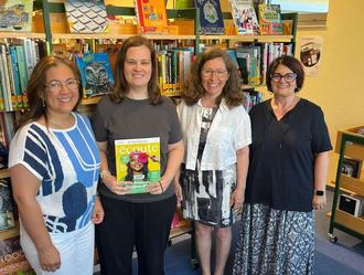 (v. l. n. r.): Frau Schlutter, Frau Riewe (Leiterin der Gemeindebücherei Limburgerhof), Frau Huber und Frau Barresi.