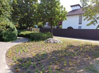 Im Rahmen von Umgestaltungsmaßnahmen vergreister Grünflächen wurden von der Abteilung Grünflächenpflege des Bauhofes im Bereich Uhlandstraße sowie Mühlweg neue Staudenareale angelegt.