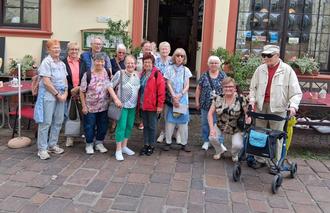 Bei schönem Wetter machten sich 15 interessierte Seniorinnen und Senioren auf den Weg um Ladenburg zu erkunden. Nach kurzer Bahnfahrt war das Ziel erreicht und die ersten Infos gab es schon auf historischen Boden am Martins Turm und Hexen Tor.