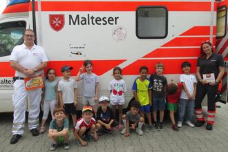 Wie auch in den Jahren zuvor hatten die Schulanfänger der Kita „Altes Rathaus“ das Projekt „Erste Hilfe“. Hier lernen die Kinder zusammen mit einer geschulten Erzieherin, wie man Pflaster richtig klebt, Verbände anlegt, einen Notruf absetzt oder was man tun muss, wenn man jemanden findet, der sich verletzt hat. Und natürlich noch einiges mehr. Zum Abschluss unseres Projektes besuchten zwei Notfallsanitäter mit einem RTW der Malteser die Kinder. Anna-Lena Heyer und Stephan Ast kamen in einer gemeinsamen Aktion des DRK Rettungsdienstes Vorderpfalz und der Malteser Schifferstadt und stellten den Kindern den RTW von innen vor. Das Erste Hilfe Projekt ist immer sehr lehrreich für die Kinder und macht ihnen besonders viel Spaß.