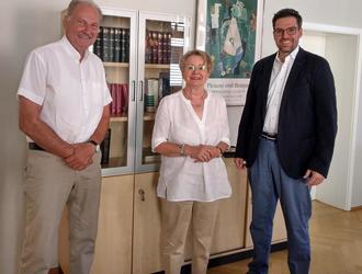 Für ihr Engagement als Schiedsperson erhielt Sigrid Reimer die Dankurkunde des rheinland-pfälzischen Ministeriums der Justiz für langjährige ehrenamtliche Tätigkeit im Bereich der Justiz. Die Auszeichnung überreichte der Direktor des Amtsgerichtes Ludwigshafen Daniel Kühner (rechts) in Beisein von Limburgerhofs Beigeordnetem Wolfgang Zettler.