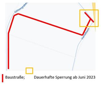 Wo der Asphalt endet, ist die Baustraße durch Aufschottern angelegt. Großer Vorteil für alle Spaziergänger: die Baustraße bleibt nach den Arbeiten erhalten und ist wesentlich besser begehbar als der alte Feldweg.