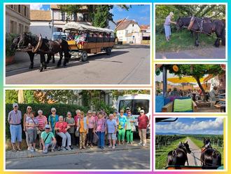 Die romantischen Planwagenfahrt durch die idyllische Landschaft von strahlendem Sonnenschein begleitet durch die sanften Hügel der malerischen Weinberge und der süße Duft von frischen Brezeln bescherte uns einen unvergesslichen Tag. Bei einer kurzen Rast nutzten einige der Ausflügler die Gelegenheit, um die Trauben, frisch gepflückt von den Reben, zu genießen.