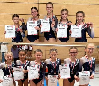 Die TG 04 stellte zwei Mannschaften. Die Mannschaft im Wettkampf „jahrgangsoffen“ mit Charlotte Becker, Luisa Benter, Narin Milli, Lea Sophie Richter und Sofie Wolff belegte den 3. Platz. Nur ganz knapp am Treppchen vorbei erreichte die Mannschaft im Wettkampf „Jahrgang 2012 und jünger“ den 4. Platz. In dieser Mannschaft turnten Sophie Kostka, Julietta Marie Richter, Clara Schröder, Veronica Stancu, Nelly Winkelmann und Paula Wirth. Alle Turnerinnen zeigten einen tollen Wettkampf und konnten neu erlernte Elemente den Zuschauern und Kampfrichtern präsentieren.