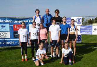 hinten, v.l.n.r.: Marius, Sebastian, Mara, Emily, Liam vorne, v.l.n.r.: Giuseppe, Judith, Helena, Mira, Phine, Elisabeth mit dem Trainerteam Leon Loren und Sarina Wilhelmi
