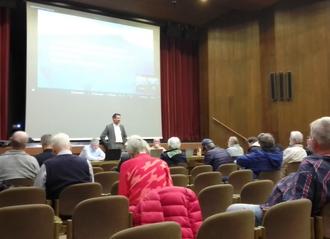 Vor- und Nachteile der Glasfasertechnologie für die Gemeinde Limburgerhof war das Thema eines Informationsabends im Kultursaal des Ortszentrums. Als neutrale Fachquelle und Kompetenzzentrum hatte die Gemeindeverwaltung dazu das Gigabit-Büro des Bundes eingeladen. Eigens dazu nach Limburgerhof gekommen war dessen Leiter Sven Butler, weil die Informationen erstmals auch in einem neuen Format präsentiert wurden: eine Parallel-Veranstaltung online im Internet und live im Kultursaal. Was gut ankam: insgesamt gab es rund 80 Teilnehmer.