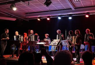 Auch nach 50 Jahren einer gut funktionierenden Partnerschaft gibt es noch Platz für Neues. So auch rund um das runde Jubiläum der Städtefreundschaft zwischen Chenôve und Limburgerhof. Ein seit etwa 30 Jahren verfolgtes Projekt konnte jetzt realisiert werden: ein gemeinsames Konzert von Akkordeonisten aus Burgund und der Pfalz. „Take five“, ein Akkordeon-Ensemble aus Limburgerhof, das auch schon öfter im Schlößchen im Park konzertierte, gastierte bei der Academie d’Accordeon de Chenove. Die beiden Orchester gaben in individuellen Konzertteilen vor über 100 Gästen im Kulturzentrum Chenove Kostproben ihrer musikalischen Arbeit – und spielten natürlich auch zusammen unter der Leitung von Chenôves Dirigenten Arnaud Bottazzo. Nach nur einer Probe klappte das hervorragend und wurde mit viel Beifall belohnt. Fazit: ein gelungener Auftakt für den Endspurt im Partnerschafts-Jubiläumsjahr.