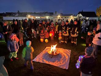 Die Jüngsten aus Altem Rathaus und Haus des Kindes trafen sich an der Domholzschule, die der Villa Kunterbunt am Hartplatz. Die Kinder zogen gemeinsam mit Eltern und Erzieher*innen sowie natürlich ihren selbstgebastelten Laternen zum Sportgelände. Dort warteten eine musikalische Umrahmung, jede Kita (unterstützt von den Elternausschüssen) hatte einen Stand mit Glühwein und Kinderpunsch organisiert, sieben Mitglieder der Freiwilligen Feuerwehr Limburgerhof versorgten die Feuerstellen und dort gab es auch für alle ein Gebäckstück, den Marschieren und Singen macht hungrig…
