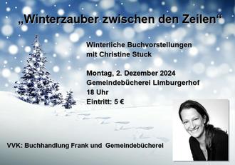 Montag, 2. Dezember – 18 Uhr: Weihnachtliche Buchvorstellung mit Christiane Stuck Eintritt: 5 € VVK: Buchhandlung Frank und Gemeindebücherei