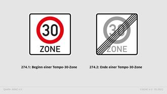 Wenn es sich um eine Tempo 30 ZONE handelt, wird durch Schilder nur am Anfang und am Ende des betroffenen Bereichs ausgeschildert.