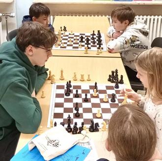 Die Zwillinge Lukas und Philipp Kapp bieten die Schach-AG freiwillig und unentgeltlich an. Beide spielen selbst seit der ersten Klasse Schach im Verein und geben ihre Begeisterung nun an die nächste Generation weiter. Die Nachfrage ist so groß, dass die AG jedes Mal direkt ausgebucht ist. Acht Jungen und zwei Mädchen lernen hier spielerisch die Grundzüge des königlichen Spiels kennen.