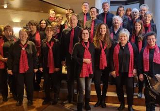 Mit dem musikalischen Advents - Café gab es Sonntags eine kleine Premiere am zweiten Adventswochenende. Die Mitglieder des Fördervereins Haus des Kindes luden zu Kaffee und Kuchen ein und der Geruch von frischen Waffeln zog durch das Foyer. Um 15 Uhr erfreuten die No Limits, der gemischte Chor des Gesangvereins Limburgerhof (Bild), unter der Leitung von Kristina Franz-Werner die zahlreichen Besucherinnen in Besucher im Foyer mit traditionellen und modernen Liedern.
