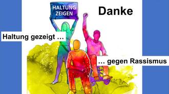 Wir danken insbesondere für die engagierten Beiträge: die Reden von Martin Fischer, Monteza Karfus und Bürgermeister Poignée, die Musik von Bernhard Vanecek & Friends, die vielen, oft sehr originellen Plakate; ein dank den vielen spontan verfügbaren Ordnern, dem Roten Kreuz und vor allem den Teilnehmenden – nur mit Eurer großen Zahl konnten wir aus Limburgerhof ein so schnelles, deutliches und optimistisches Zeichen für ein zuversichtliches Miteinander senden.