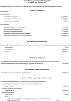 Der Antrag auf Genehmigung wurde der Kommunalaufsicht am 06.12.2023 zugestellt. Bis einschließlich 07.02.2024 wurde die Genehmigung durch die Aufsichtsbehörde weder abgelehnt, noch wurden schriftlich Bedenken geäußert oder um weitere Aufklärung ersucht. Somit gilt die Haushaltsgenehmigung kraft Gesetz als erteilt.