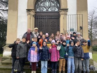 Die Schülerinnen und Schüler der vierten Klassen der Carl-Bosch-Schule beschäftigten sich im Rahmen des Sachunterrichts mit der Ortsgeschichte Limburgerhofs. Helga Lüttmer und Wolfram Hoppe, die seit vielen Jahren sich in Sachen Ortschronik und Gemeindeführungen engagieren, erzählten den Kindern anschaulich von der Geschichte des Schlösschens und des Turms im Park und berichteten darüber, wie das Leben und die Schule früher waren. Zum Abschluss durften die Kinder den Ausblick vom Turm über Limburgerhof genießen.